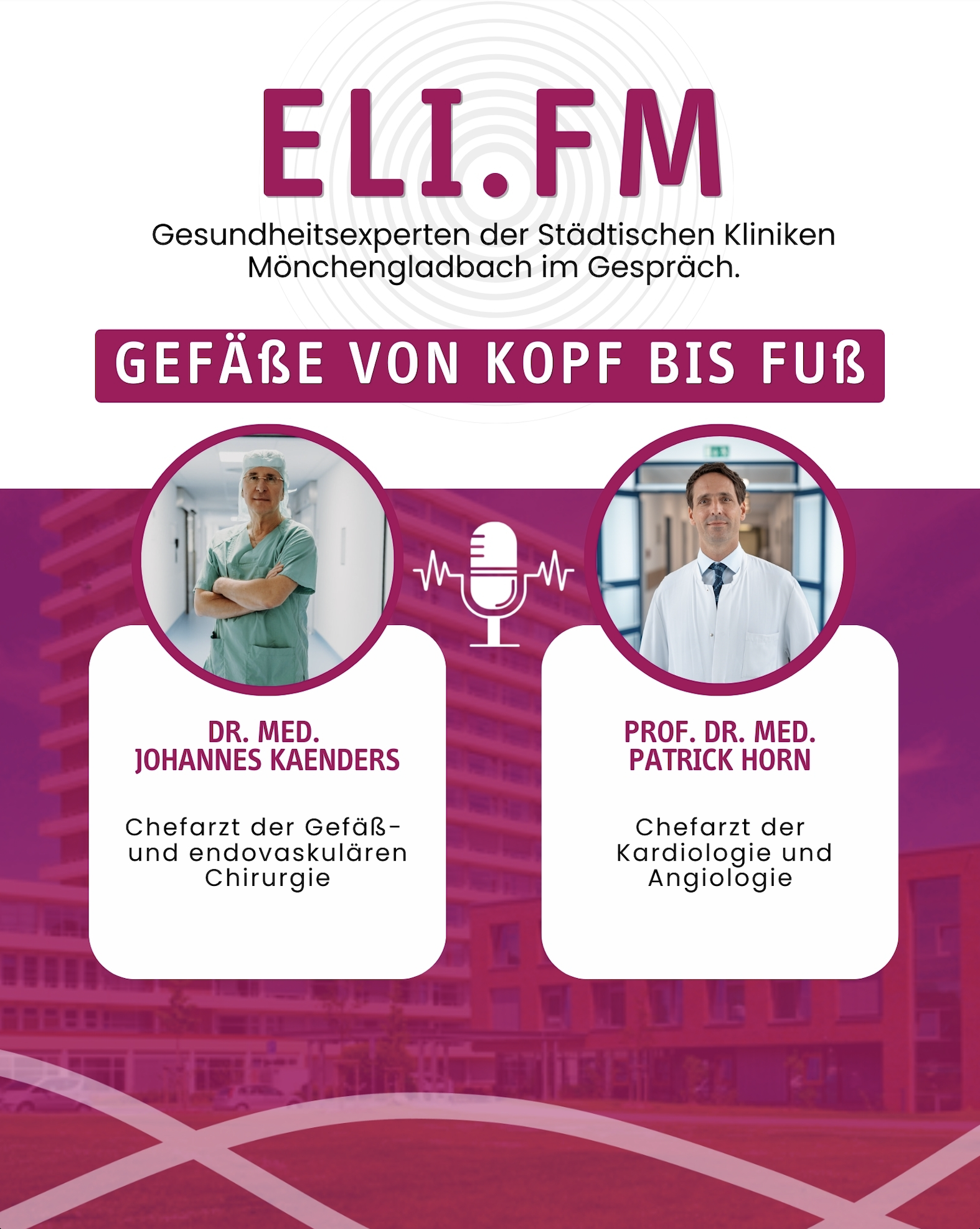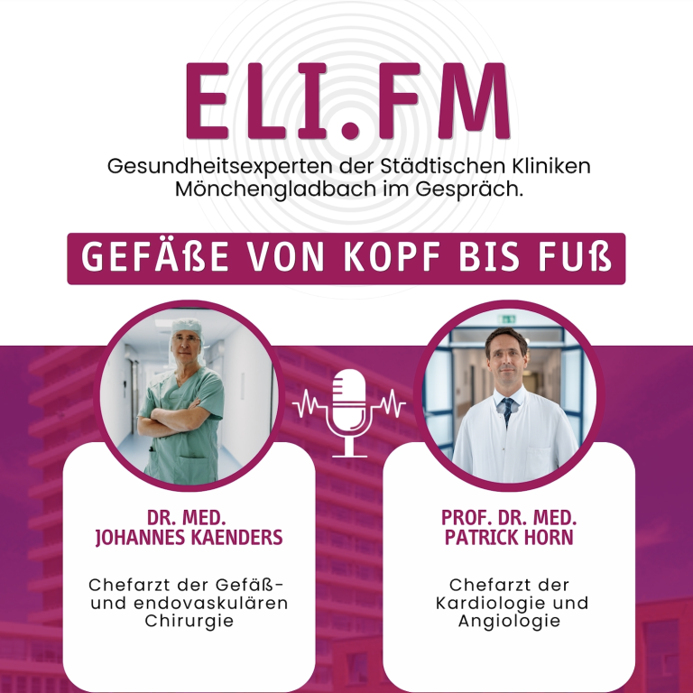 Was hält unsere "Gefäß-Autobahn" eigentlich in Schuss? Und warum ist Teamarbeit lebenswichtig, wenn die Leitungen mal verstopft sind? In diesem Radiotalk dreht sich alles um das Thema Gefäßgesundheit. Prof. Dr. med. Patrick Horn (Kardiologie & Angiologie) und Dr. med. Johannes Kaenders (Gefäßchirurgie) geben exklusive Einblicke in ihre tägliche Arbeit im "Eli". Erfahren Sie, warum im Elisabeth-Krankenhaus kein Patient operiert wird, ohne dass das gesamte Expertenteam - vom Kardiologen bis zum Radiologen - gemeinsam grünes Licht gibt. Warum Blutdruck wie zu hoher Druck in der Leitung wirkt und warum schon 7.000 Schritte täglich Ihre Gefäße schützen können. Warum der "große Schnitt" heute oft die Ausnahme ist und wie moderne Katheter-Eingriffe über einen winzigen Pieks in der Leiste Leben retten.